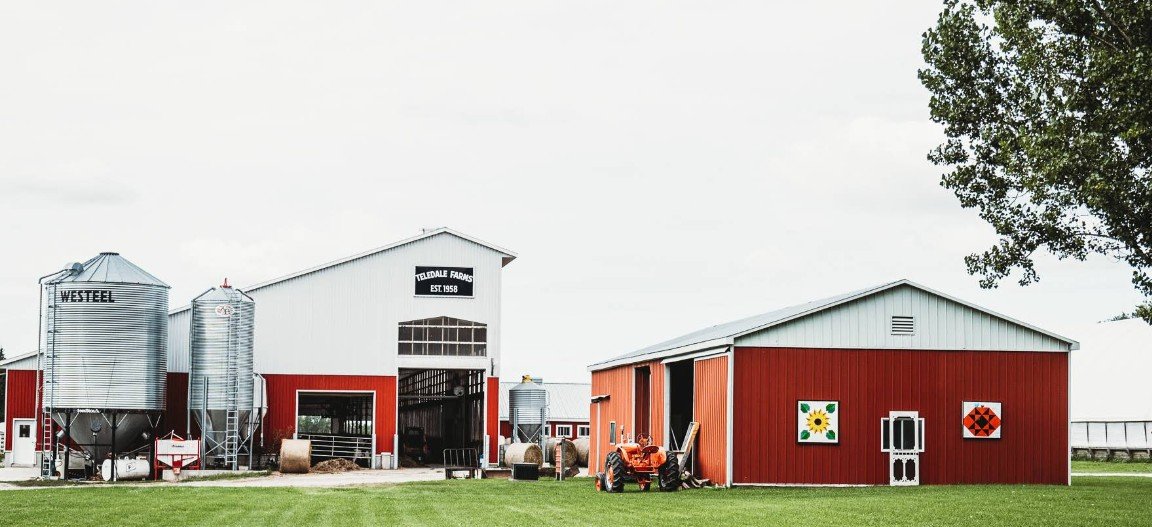 Teledale Farms is a third-generation dairy operation located in Sunderland (Brock Township), recognized as a modern leader in the Durham Region’s agricultural landscape. Since its purchase by the Smith family in 1958, the farm has evolved from a small 20-cow herd milked by hand to a high-tech facility milking over 100 cows using advanced robotic milking systems. Now certified as a “grass-fed” producer, Teledale is a frequent highlight of the annual Sunderland Maple Syrup Festival, where it opens its doors for bus tours that allow the public to witness firsthand the integration of robotics in dairy farming. The farm is also a notable stop on the Durham Barn Quilt Trail, featuring a distinct sunflower-themed quilt—the “Pinedale Patch”—which symbolizes the family’s newer ventures into agritourism, including their popular seasonal sunflower trail and pumpkin patch.