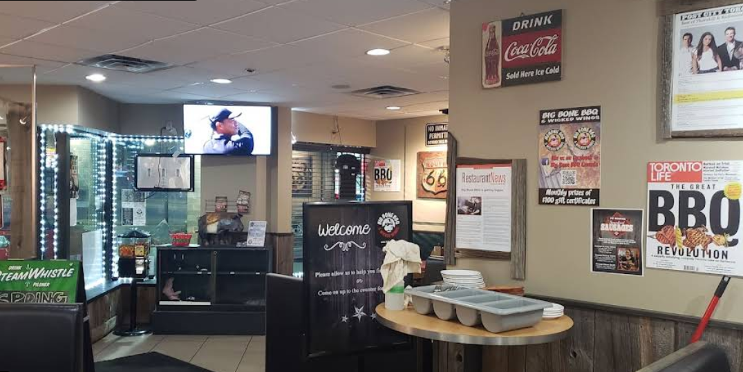 Big Bone BBQ & Wicked Wings in Whitby is a popular barbecue restaurant and catering spot in the Durham Region of Ontario, Canada. Located at 701 Rossland Rd E, this well‑loved diner brings more than 25 years of Southern‑style BBQ experience to the area, with a menu featuring award‑winning ribs, wicked wings, pulled pork, and other classic smoked favourites. The Whitby location is known for its casual family‑friendly vibe, convenient parking, and strong local following, making it a go‑to destination for hearty BBQ meals, takeout, and catered events.